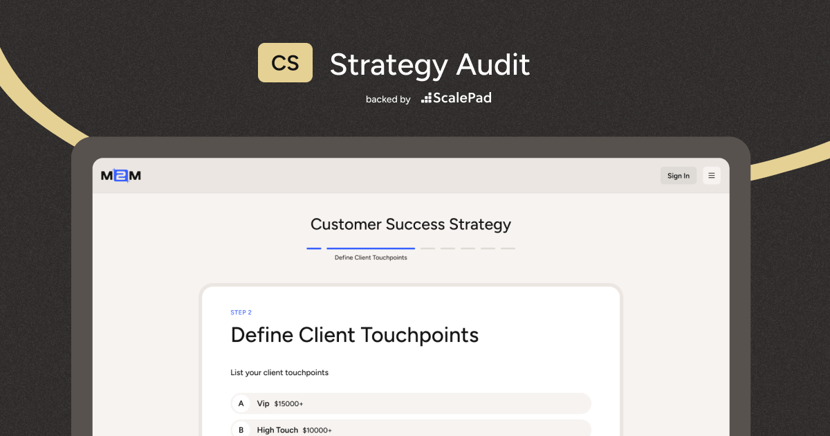 Complete an in-depth audit of your current CS strategy. The app reviews your inputs on four areas: segmentation, resource allocation, client engagement, and capacity planning. It then generates a plan you can use to strengthen and organize Customer Success efforts.
